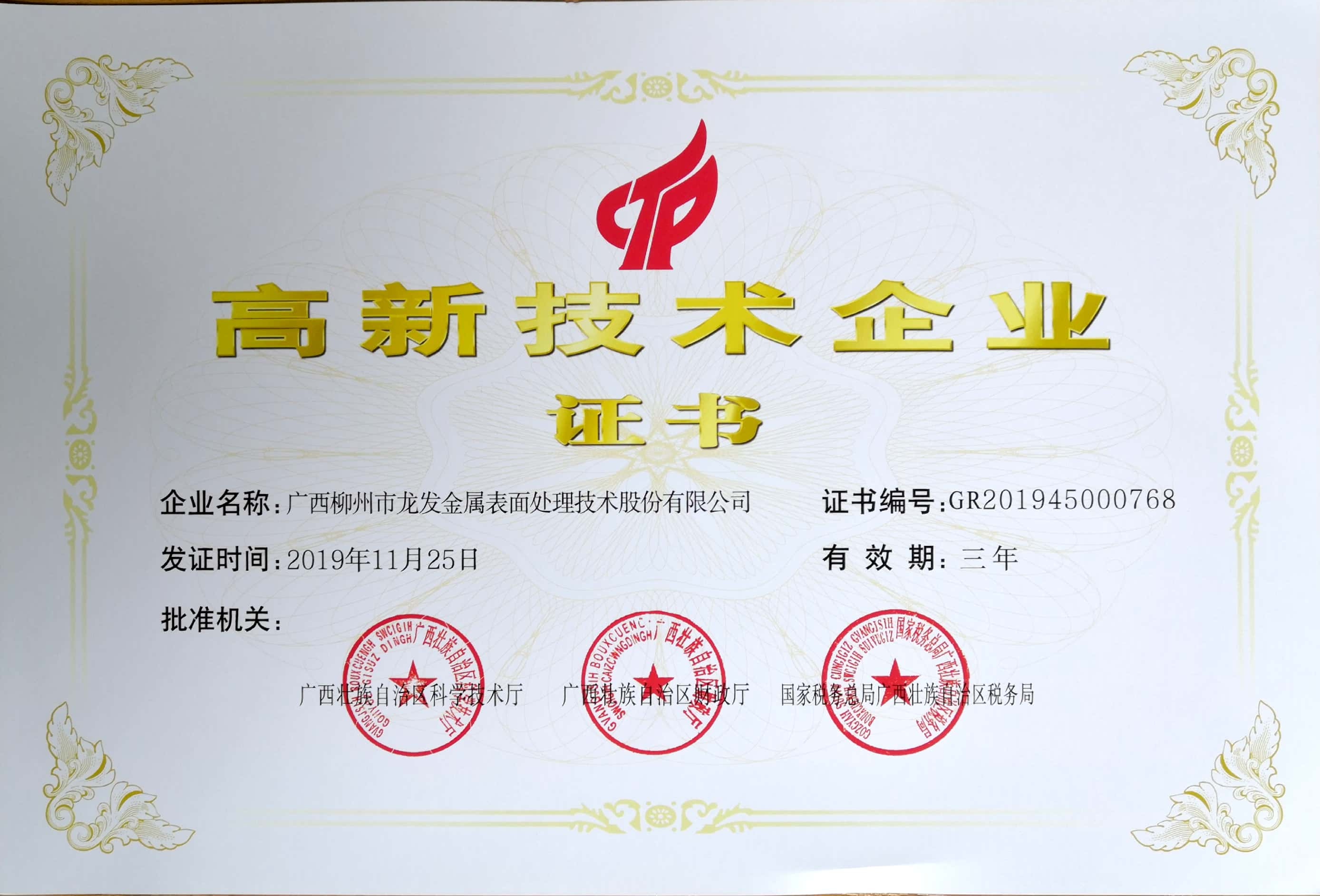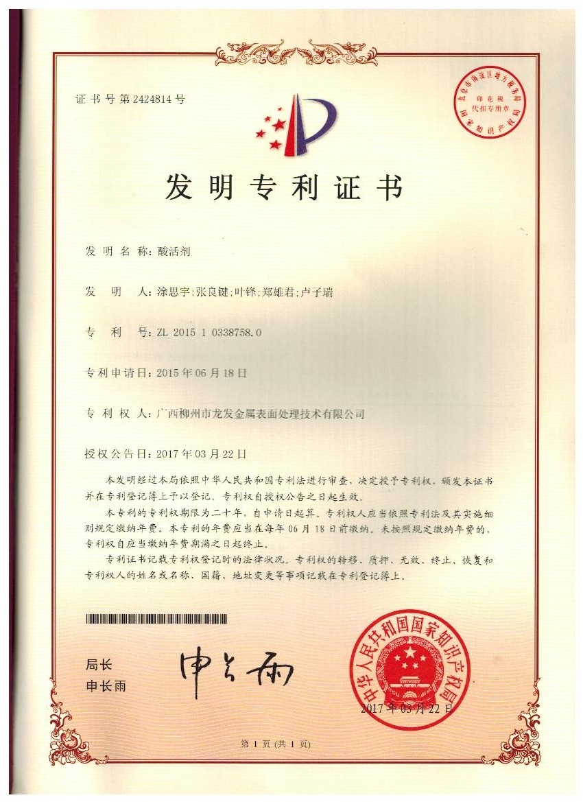 廣西柳州市龍發金屬表面處理技術股份有限公司